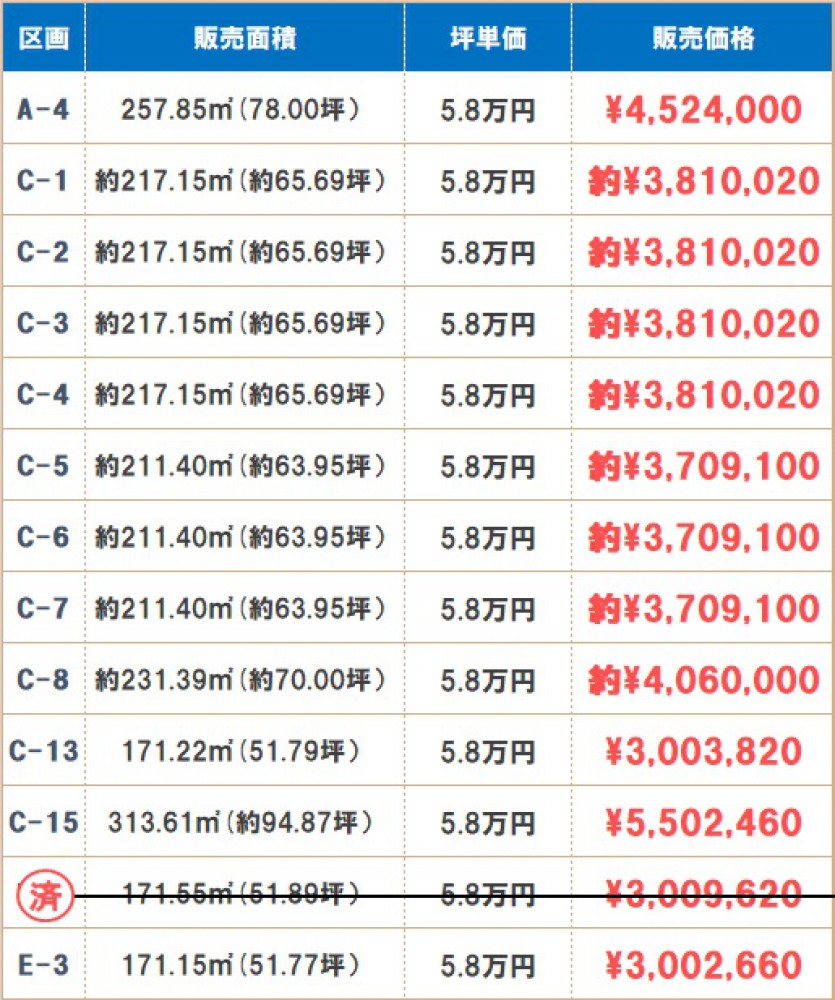| 備考 | ※一部の区画は、予定面積の為、面積の確定は測量後となります。 |