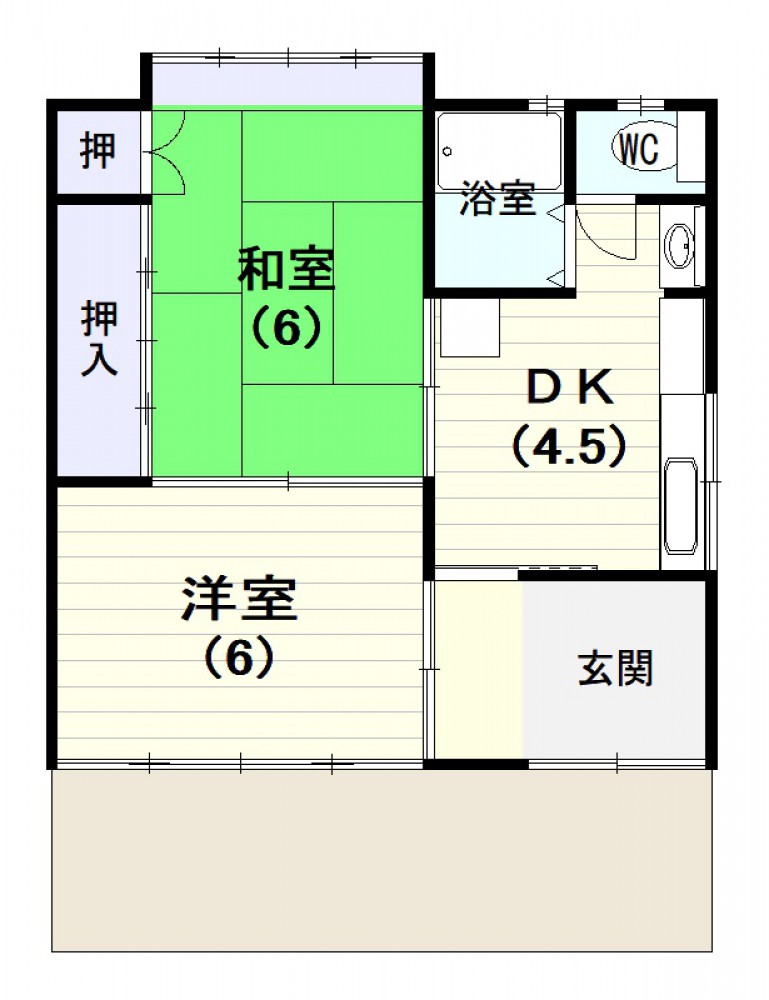 | 間取り | [1階] DK4.5帖、和室6帖、洋室6帖 |