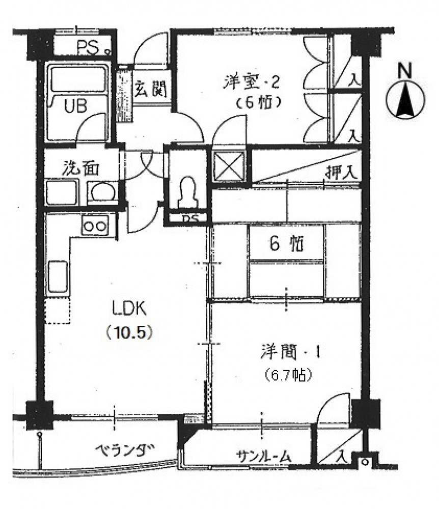 [3階] 和室6帖、洋室6.7帖、洋室6帖、LDK10.5帖、バス・トイレ独立 |