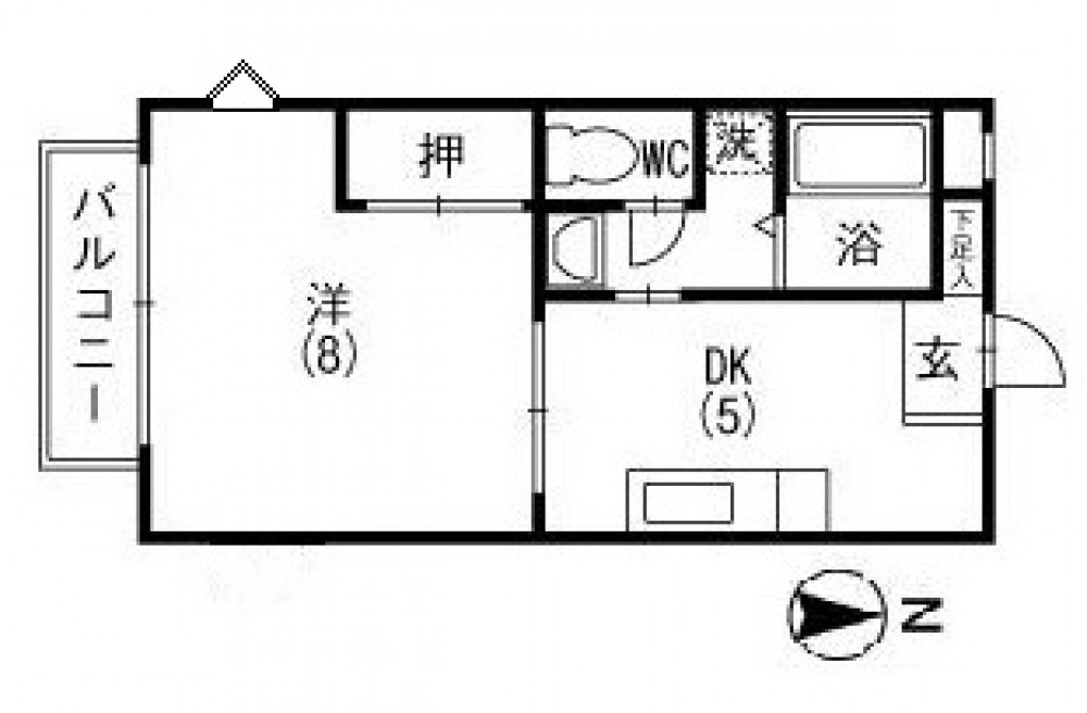 [1階] 洋室8帖、DK5帖、バス・トイレ独立 |