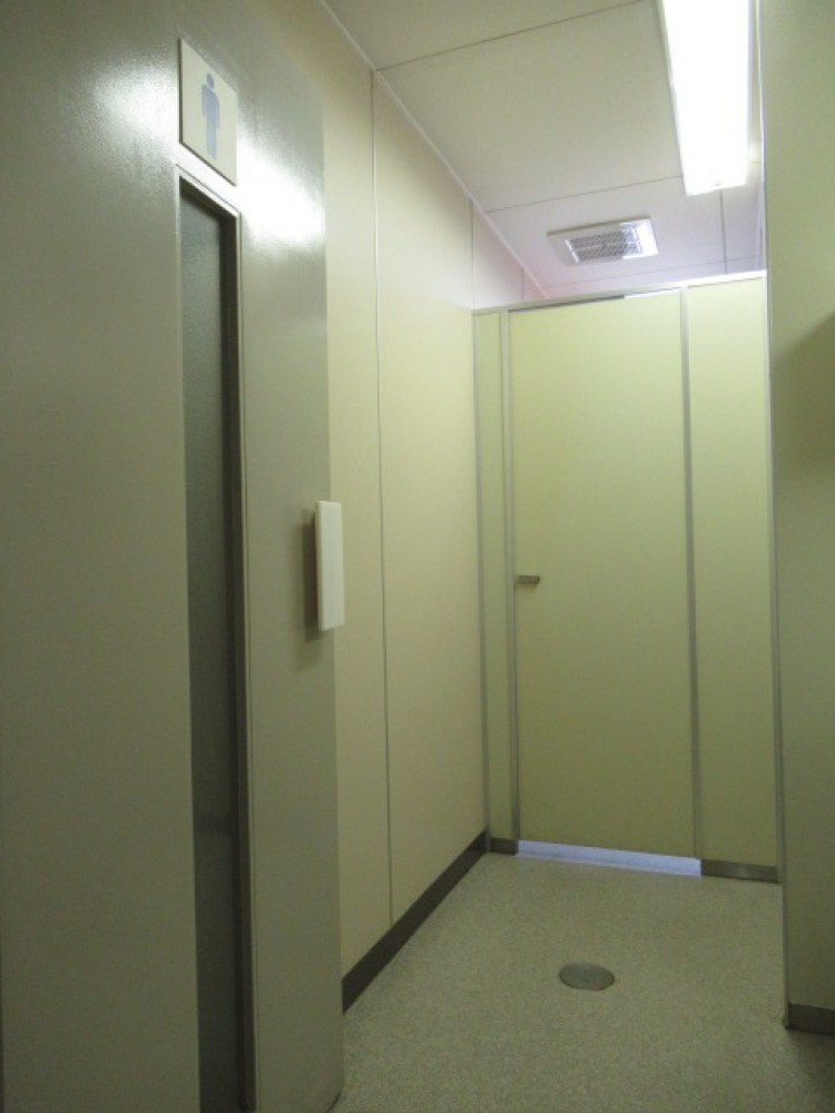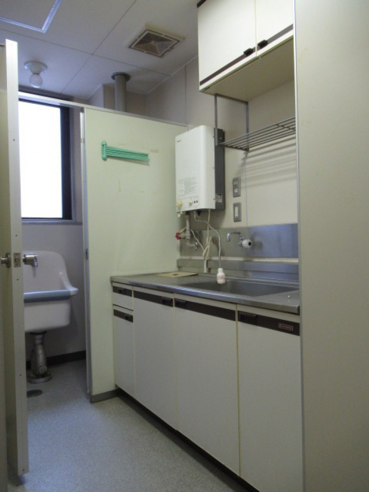 ■男女専用WC、共用給湯室、タイルカーペット敷OAフロア
