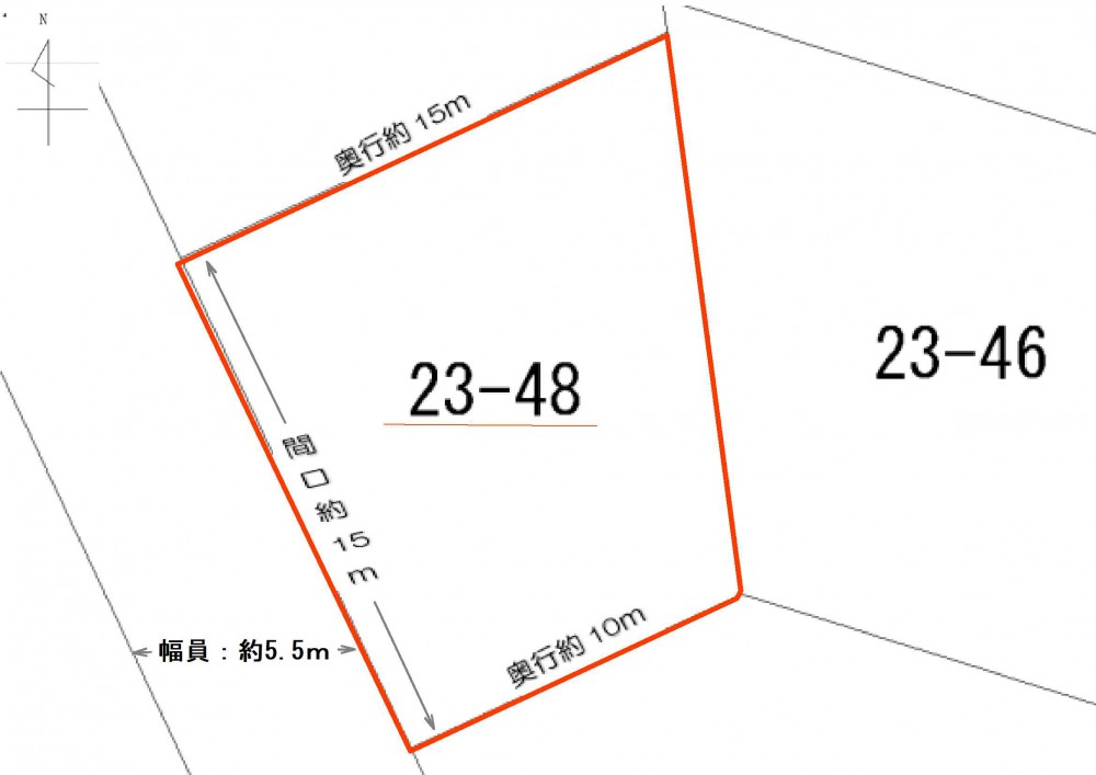 | 間口・接道 | 南西 : 間口15.4m、道路幅員5.5m |