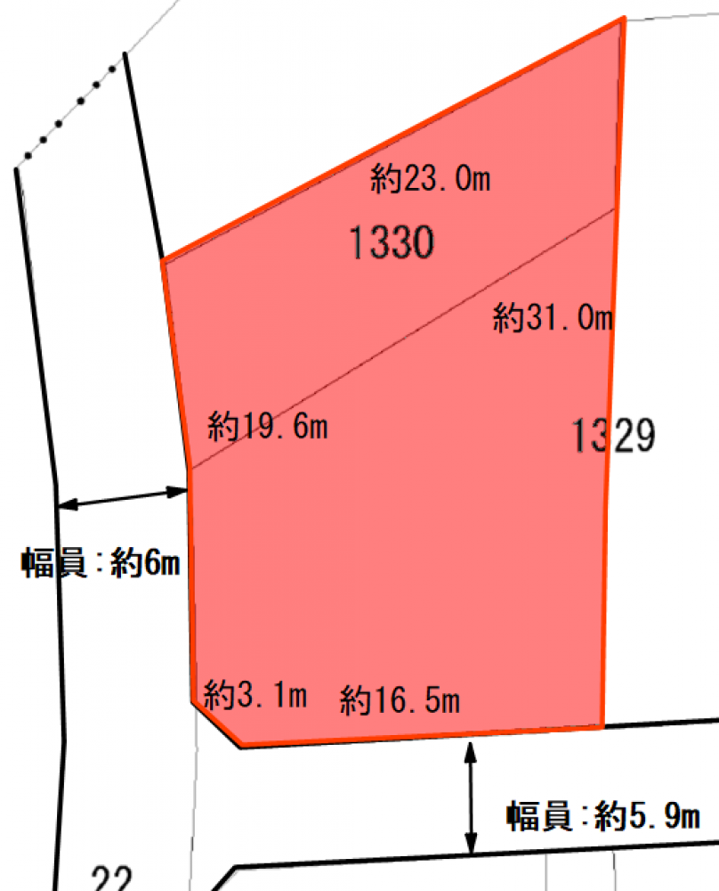 ・記載の土地面積は分筆後の予定のため、若干の変更があります。 |