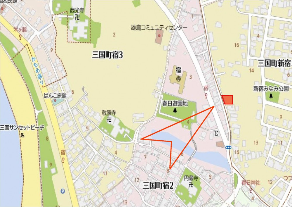 - 三国港駅・サンセットビーチまで1km圏内の閑静な住宅街。 間口広々約17.8m!