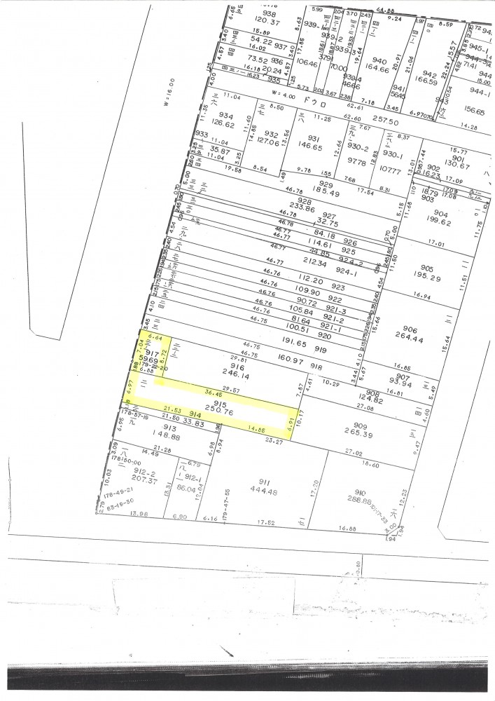 | 備考 | 本物件は三者(915番土地/個人所有・917番土地/法人所有・917番建物/個人所有)が所有する土地建物を一括して売買を行うことになります。よって、売買契約は三者(915番土地/売買価格16,800,000円・917番土地/売買価格4,000,000円・917番建物<税込>18,000,000円)との契約締結となるため、仲介手数料は合計1,424,400円(※注意)必要となります。 |