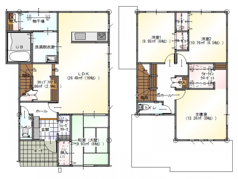 [2階] LDK16帖、和室6帖、サービスルーム2.9帖、洋室8帖、洋室6.5帖、洋室6帖 |