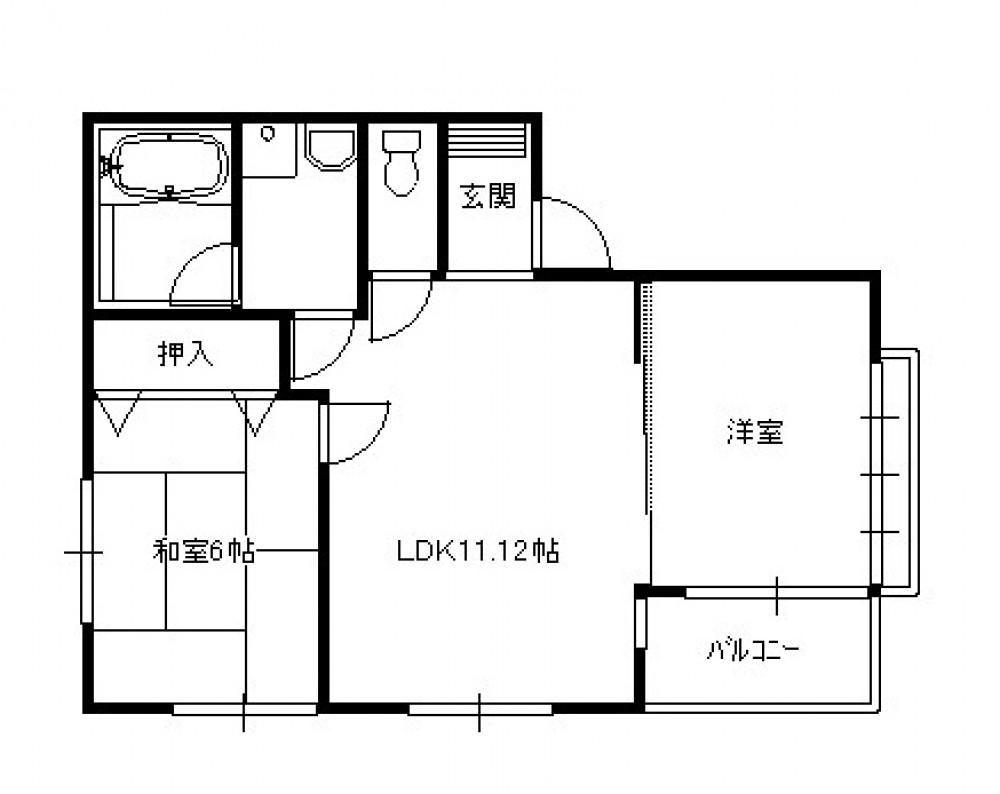 1階 /2階建 / [1階] 洋室 8帖 、 K 、 バス 、 トイレ 、 納戸