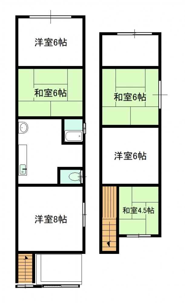 1階、 2階 /2階建 / [1階] 和室 6帖 、 洋室 8帖 、 洋室 6帖 、 DK 、 バス・トイレ独立 [2階] 和室 6帖 、 和室 4.5帖 、 洋室 6帖