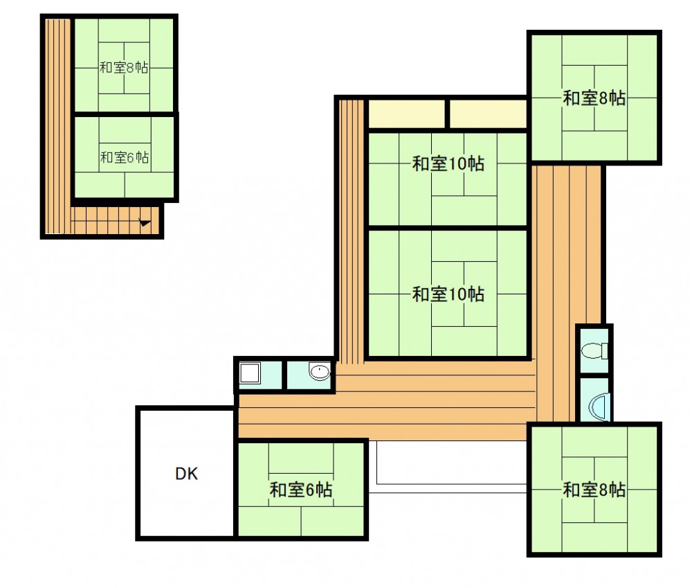 1階、 2階 /2階建 / [1階] DK 、 和室 10帖 、 和室 10帖 、 和室 8帖 、 和室 8帖 、 和室 6帖 、 バス・トイレ独立 [2階] 和室 8帖 、 和室 6帖