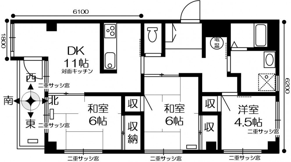 ・シンクが広い ・玄関広い ・エアコン2台(DK・和室) ・P2台目可能 ・道路側居室(二重サッシ内窓)・省エネ給湯器(エコキュート給湯) |