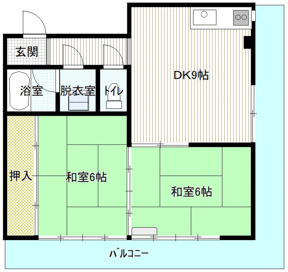 [3階] 和室6帖、和室6帖、DK9帖、バス・トイレ独立 |