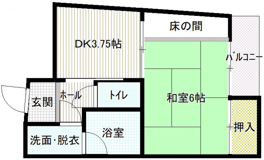 [1階] 和室6帖、DK3.75帖、バス・トイレ独立 |
