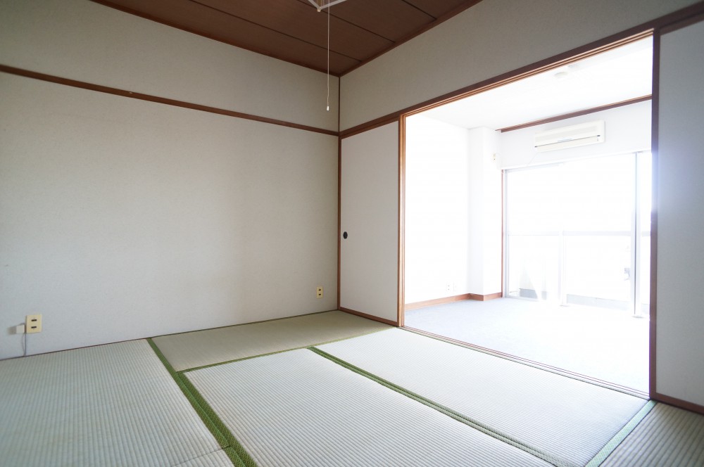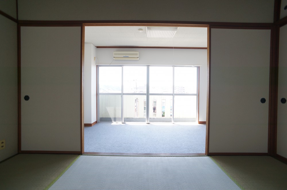 - 2DKタイプのお部屋ですが、続き間になっているので広々と使うことができます。キッチンスペースも広いので自炊をする方にはおすすめです。エアコン、照明器具はもちろん付いています!ワイドなベランダも魅力的です!