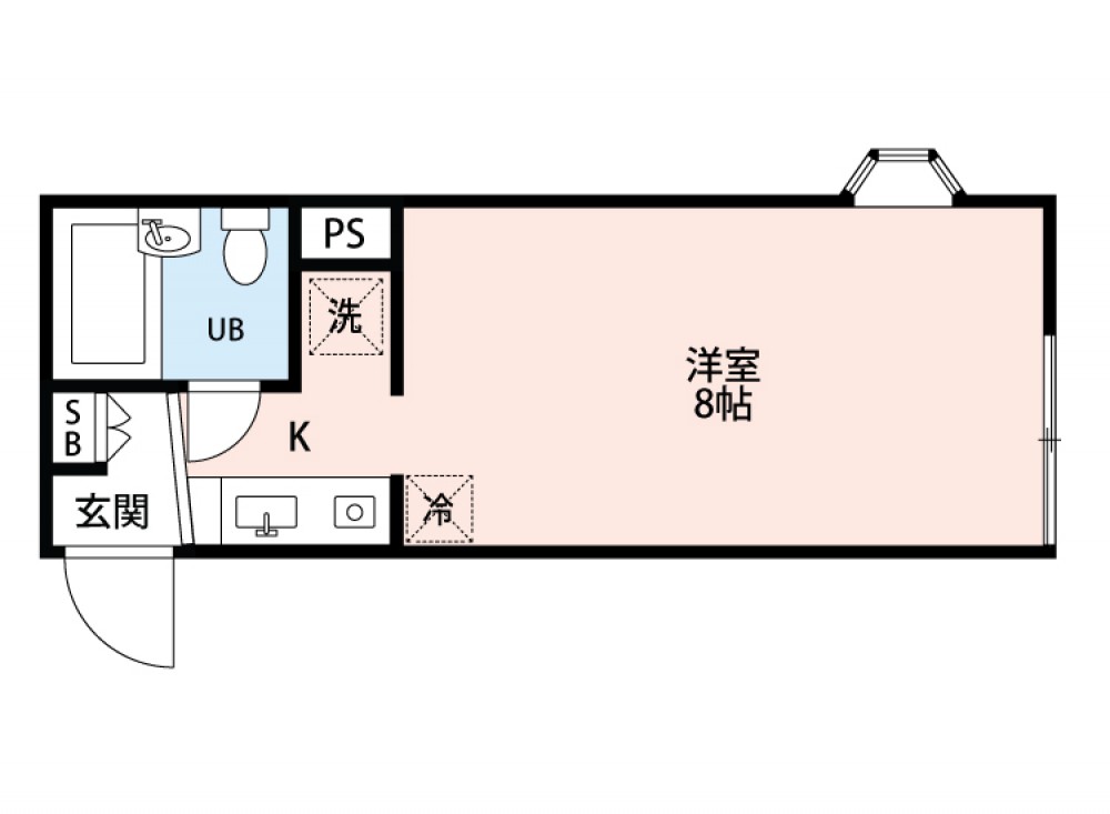 [2階] 洋室8帖、K2帖、バス・トイレ同室 |