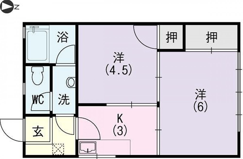 [1階] 洋室6帖、洋室4.5帖、K3、バス・トイレ独立 |