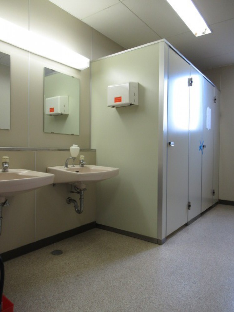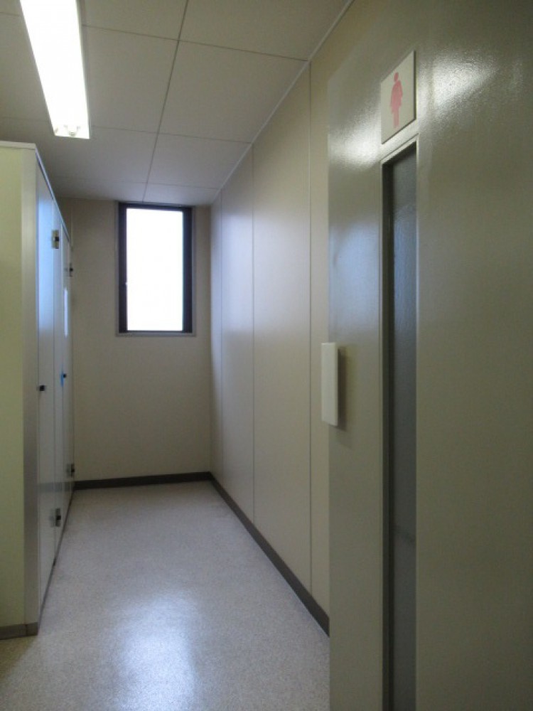 ■男女専用WC、共用給湯室、タイルカーペット敷OAフロア