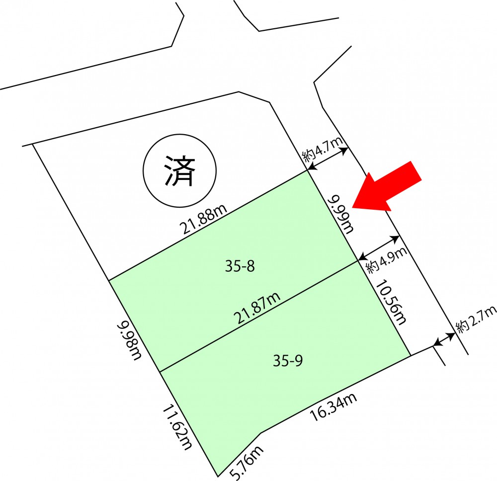 | 間口・接道 | 北東 : 間口9.99m、道路幅員4.9m |