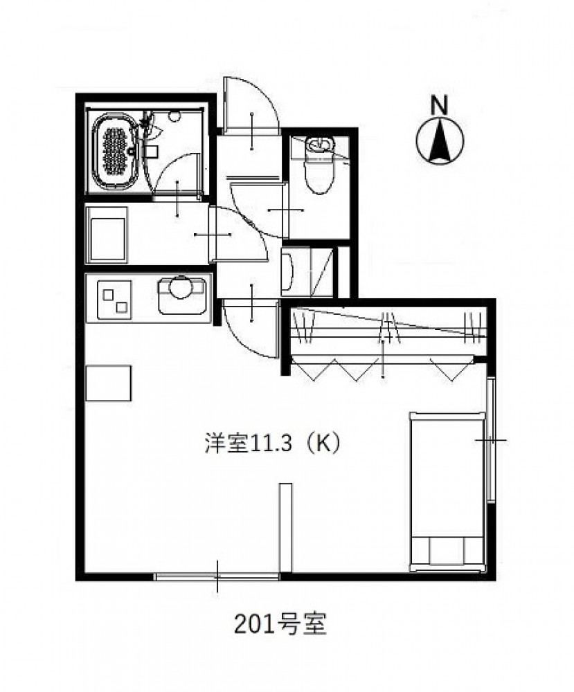[2階] 洋室11.3帖、K、バス・トイレ独立 |