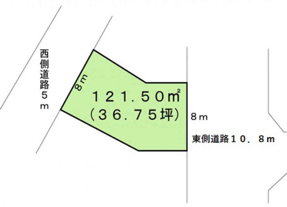 メイン通り沿いにある二方道路の土地