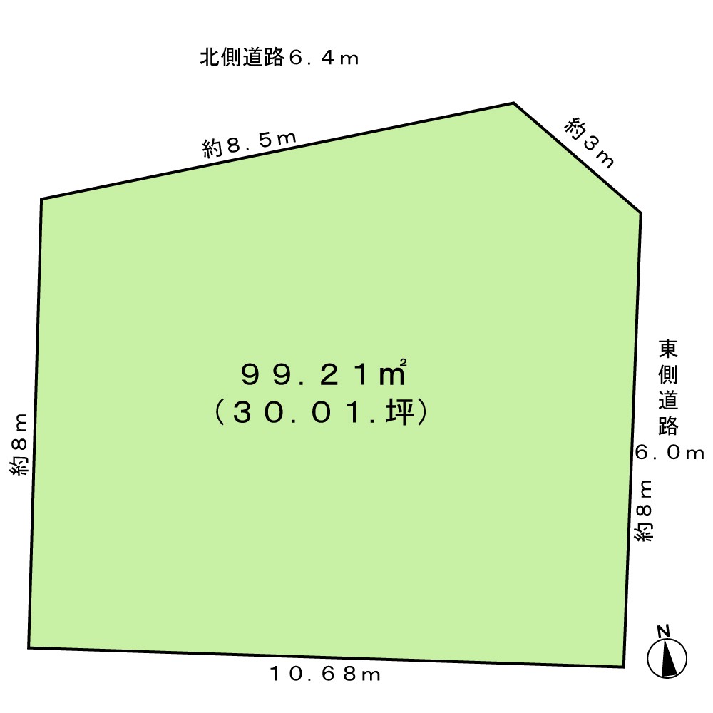 土地向き 東、 北