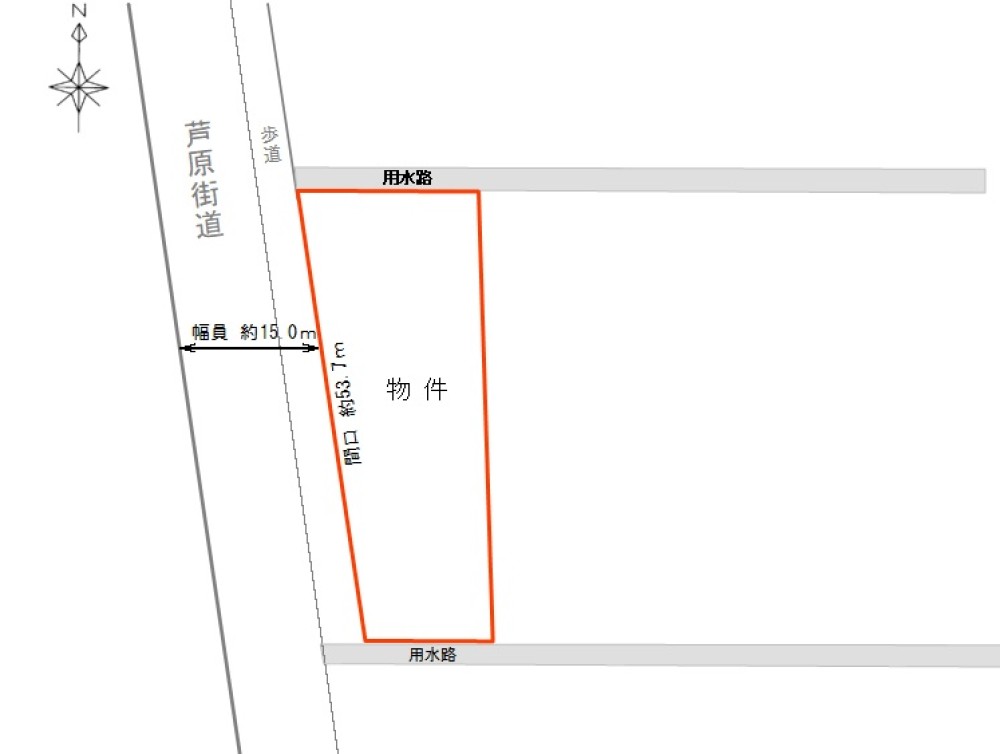 メイン通り沿いにある二方道路の土地