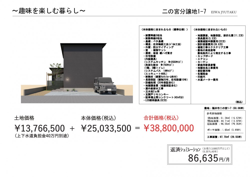 ※所得税、固定資産税、登記費用、保険料等は含まれておりません