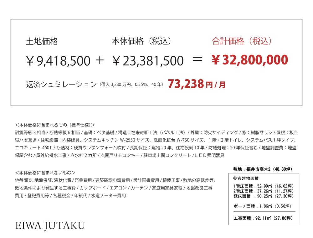 ※所得税、固定資産税、登記費用、保険料等は含まれておりません