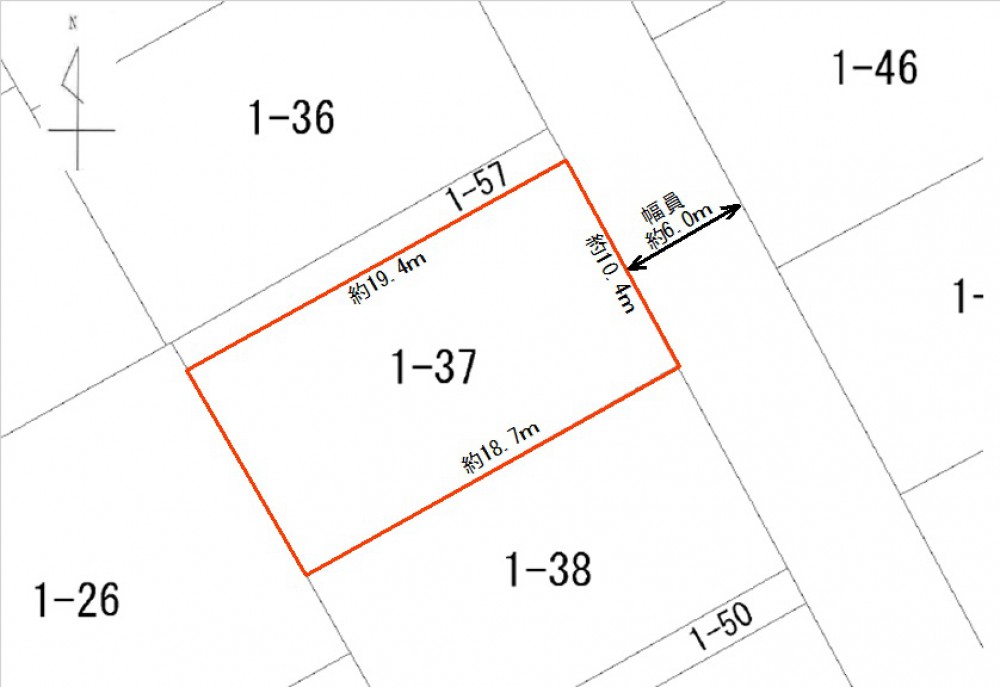 | 間口・接道 | 北西 : 間口10.4m、道路幅員6m |