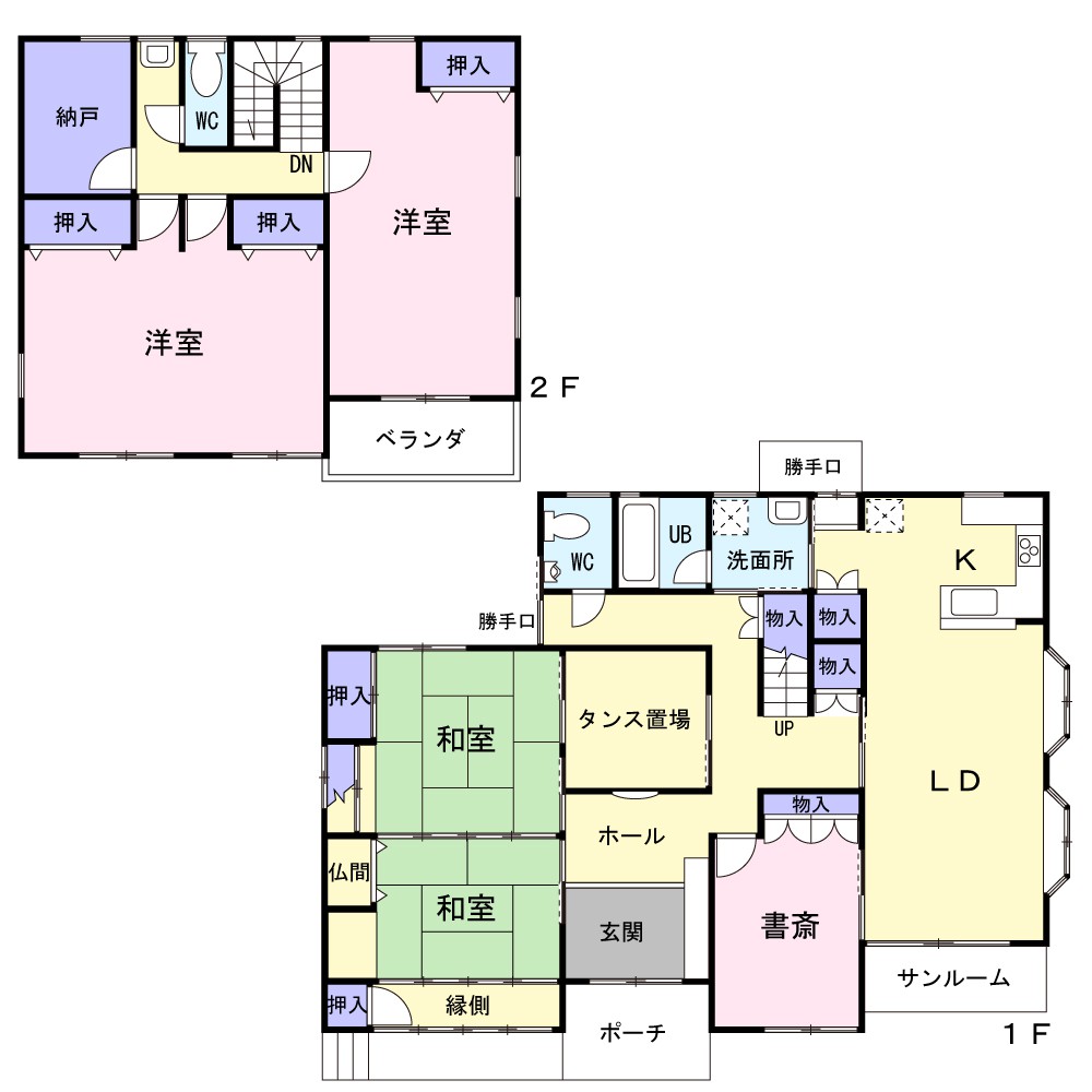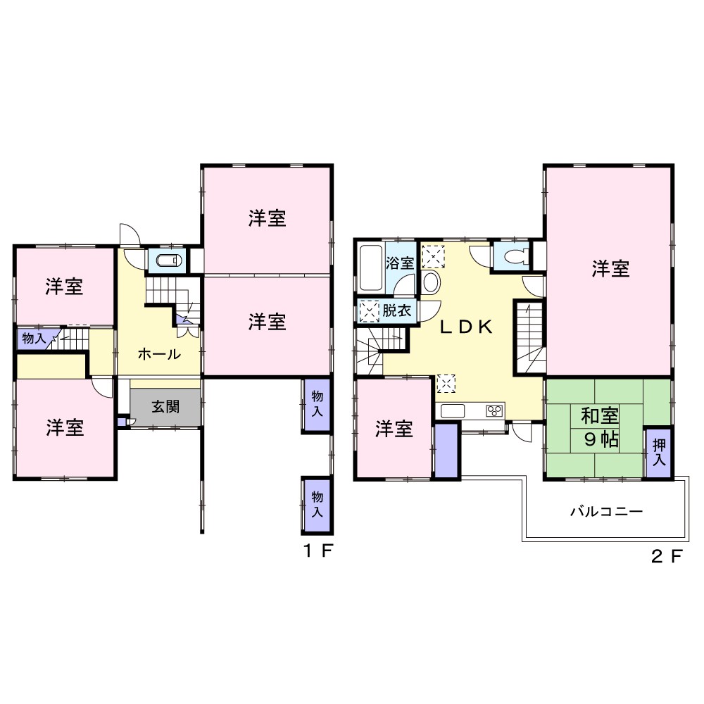 1階、 2階 /2階建 / [1階] 洋室 、 洋室 、 洋室 、 洋室 [2階] LDK 、 洋室 、 洋室 、 和室 9帖