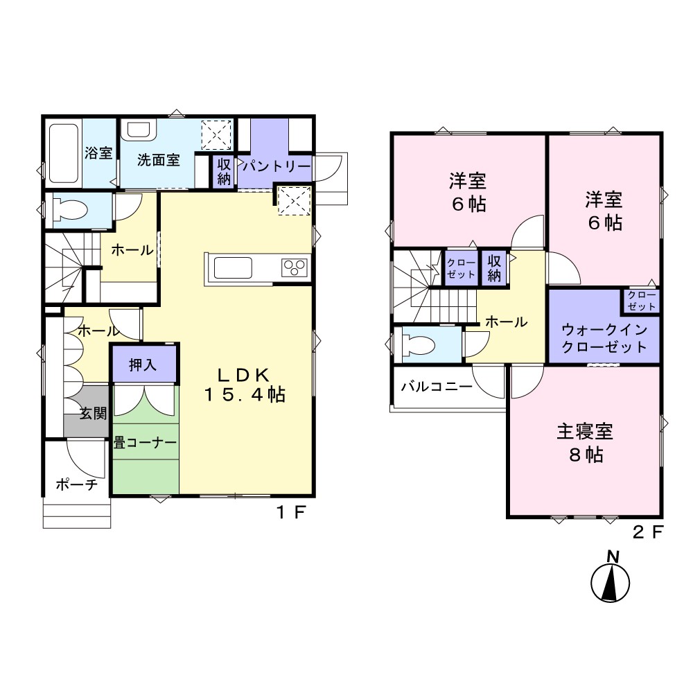 1階、 2階 /2階建 / [1階] DK 、 和室 6帖 、 和室 6帖 、 和室 8帖 [2階] 洋室 、 洋室 、 和室 6帖