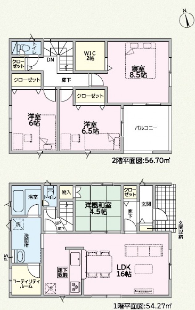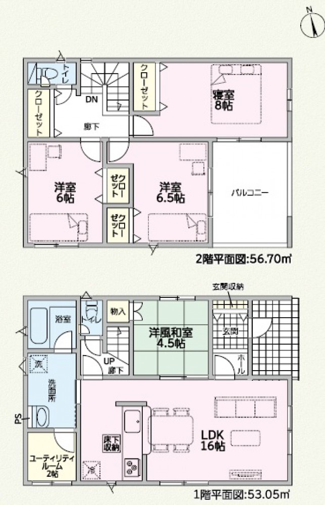1階、 2階 /2階建 / [1階] LDK 15.69帖 、 和室 4.5帖 [2階] 洋室 8.5帖 、 洋室 5.33帖 、 洋室 5.33帖