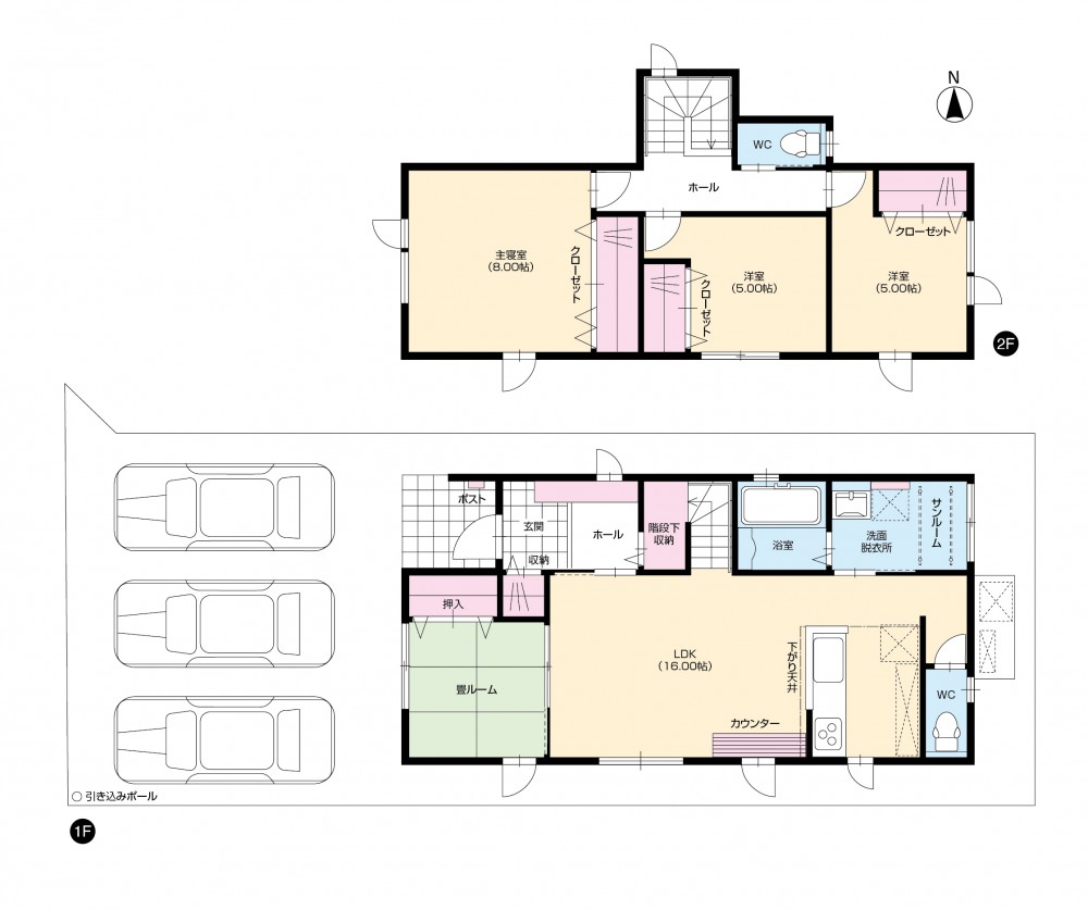 1階、 2階 /2階建 / [1階] LDK 16帖 、 和室 [2階] 洋室 8帖 、 洋室 5帖 、 洋室 5帖