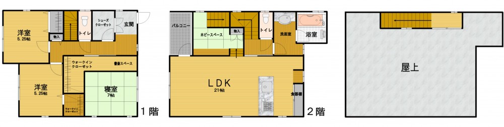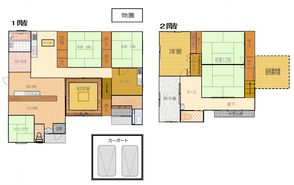 1階、 2階 /2階建 / [1階] DK 、 和室 、 和室 、 バス 、 トイレ [2階] 和室 、 洋室 、 洋室