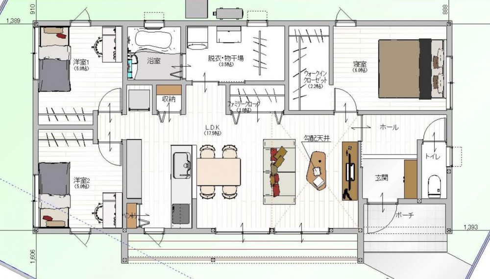 ご家族が多い方や、ゆとりある暮らしを求める方におすすめの広々とした間取り。