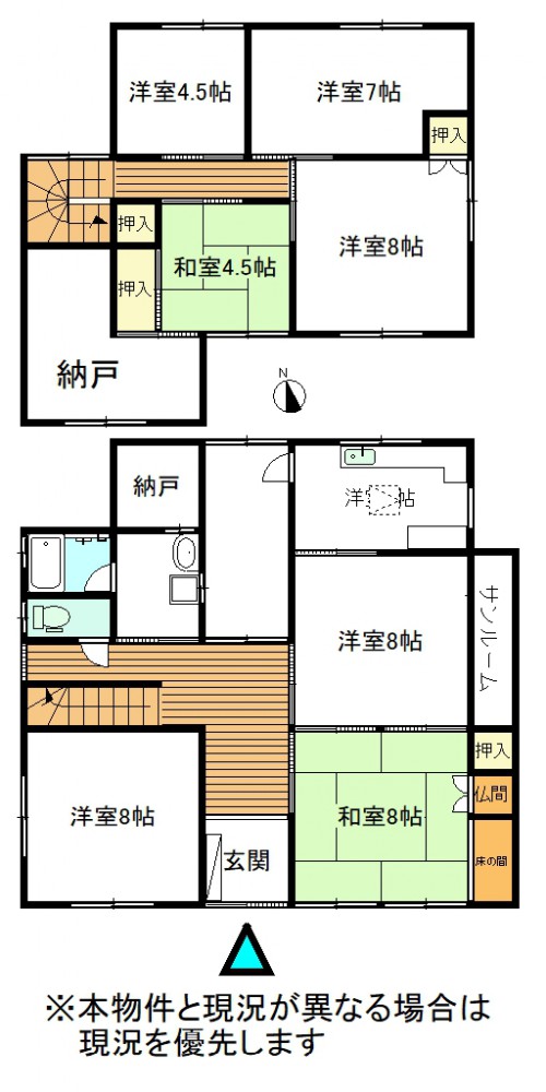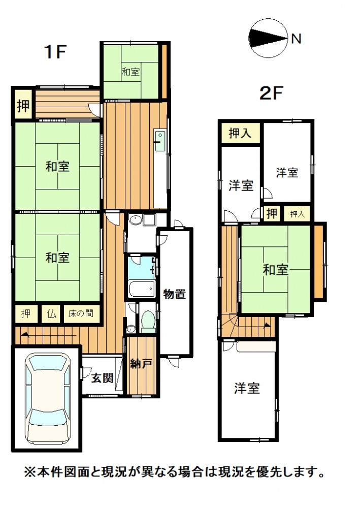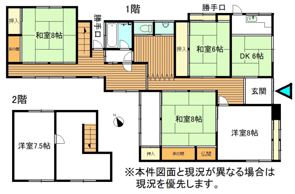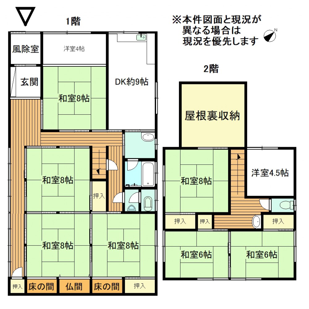 1階、 2階 /2階建 / [1階] LDK 20帖 、 和室 28帖 、 和室 6帖 、 和室 6帖 、 和室 6帖 、 洋室 6帖 、 洋室 5帖 、 納戸 17.5帖 、 トイレ 、 トイレ 、 トイレ 、 バス [2階] 洋室 4.5帖 、 和室 16帖 、 和室 8帖