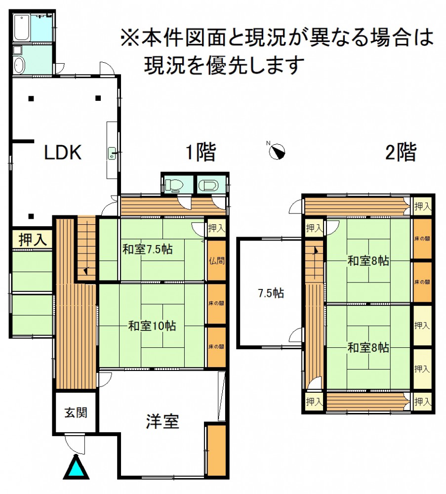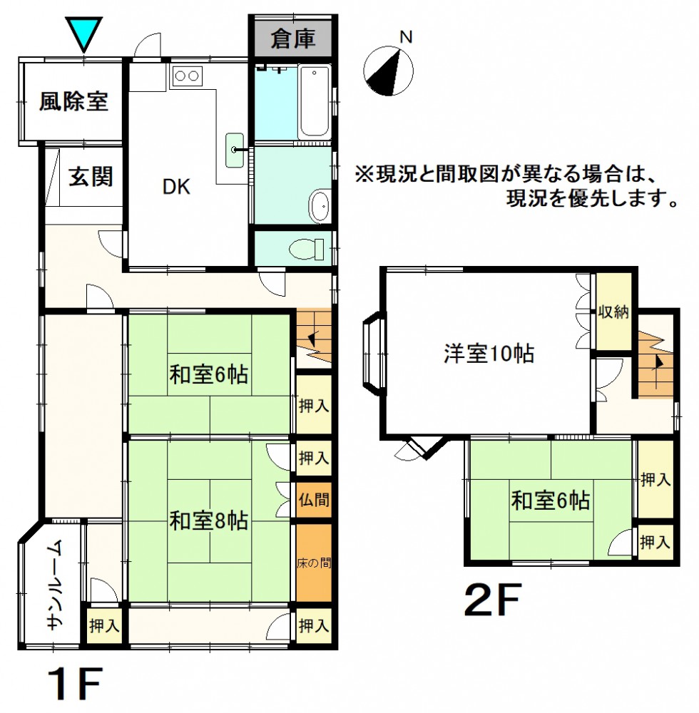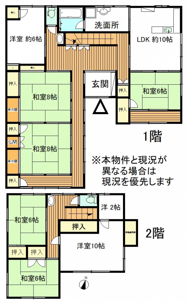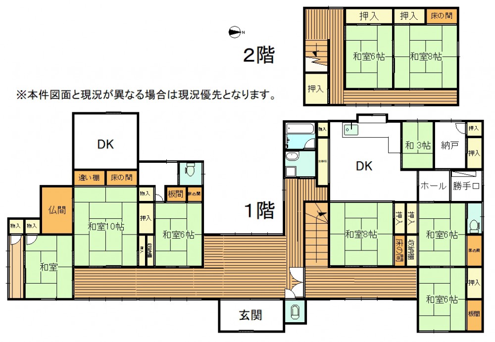 1階、 2階 /2階建 / [1階] DK 10帖 、 和室 12.5帖 、 和室 8帖 、 和室 4帖 、 和室 8帖 、 和室 6帖 、 バス 、 トイレ 、 納戸 [2階] 洋室 6帖 、 洋室 10帖 、 洋室 10帖 、 和室 10帖 、 和室 8帖 、 K 、 トイレ 、 納戸