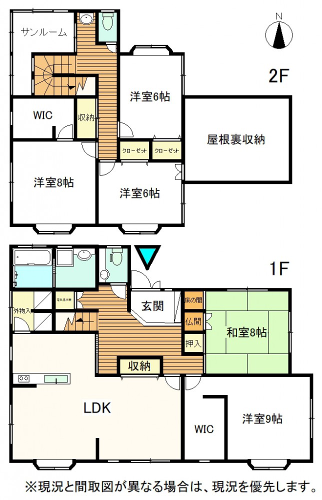1階、 2階 /2階建 / [1階] LDK 、 和室 8帖 、 洋室 9帖 、 バス 、 トイレ 、 納戸 [2階] 洋室 、 洋室 、 洋室 、 トイレ 、 その他
