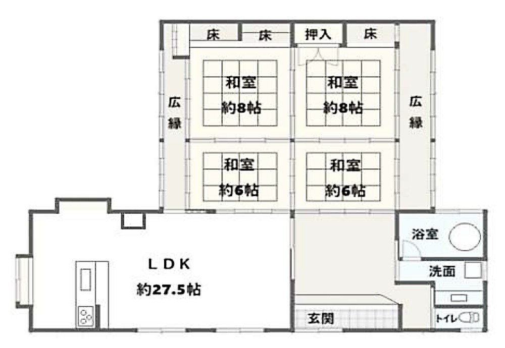 1階、 2階 /2階建 / [1階] 洋室 14帖 、 LDK 、 和室 8帖 、 バス 、 トイレ [2階] 和室 36帖 、 和室 7.5帖 、 納戸 6帖 、 K