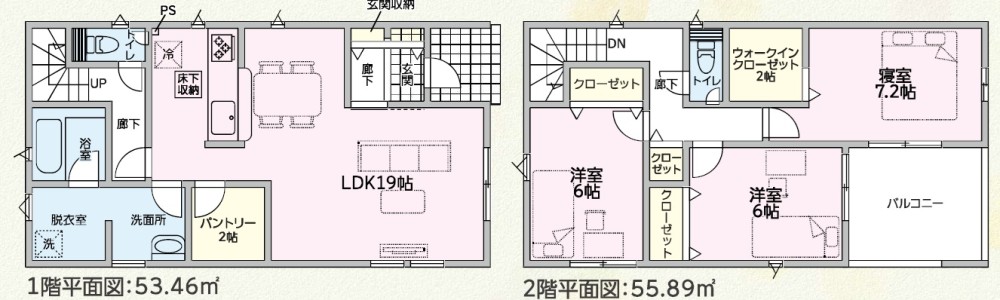 [1階] LDK19帖 [2階] 洋室7.2帖、洋室6帖、洋室6帖 |