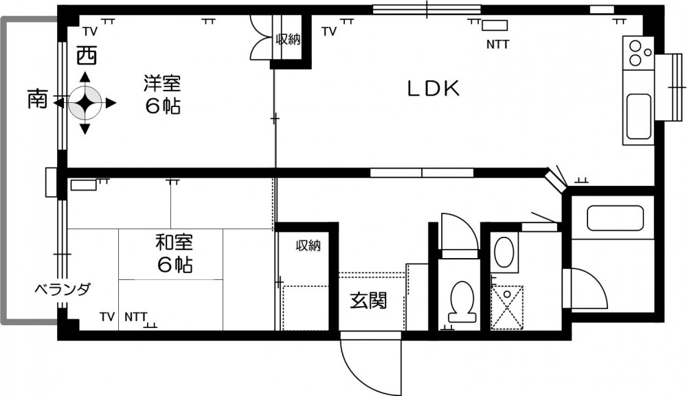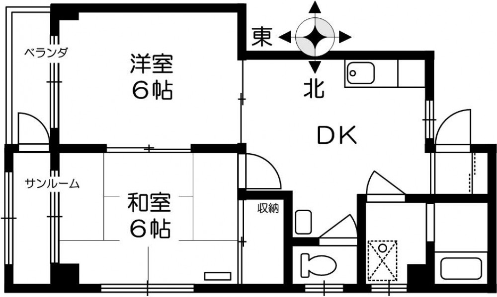 吉川小学校区の2DK賃貸!使い勝手のよい間取です