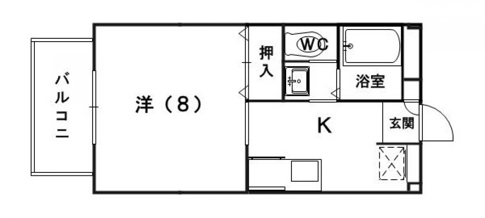 2階 /3階建 / [2階] 洋室 8帖 、 K 2帖 、 バス・トイレ独立