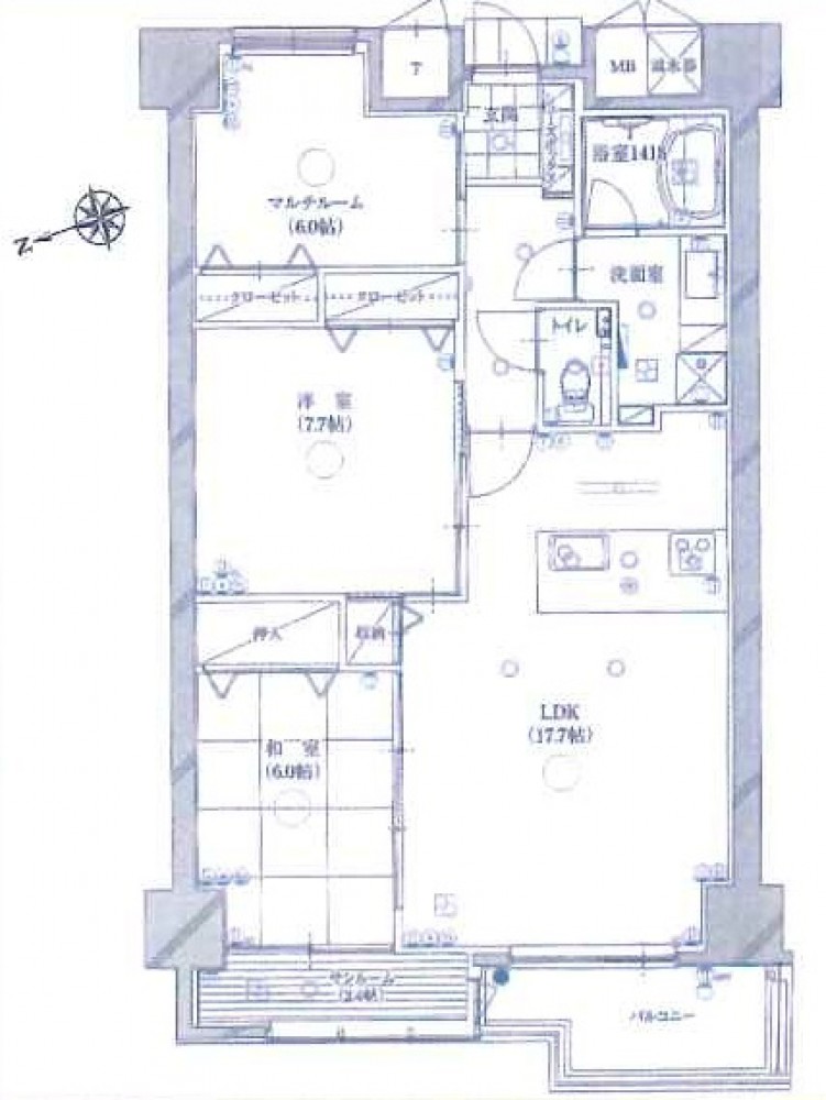 6階 /14階建 / [6階] LDK 17.7帖 、 洋室 7.7帖 、 和室 6帖 、 サービスルーム 6帖 、 その他 2.4帖