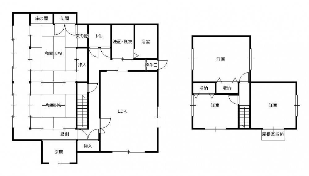 [1階] LDK14帖、和室10帖、和室8帖、バス・トイレ独立 [2階] 洋室、洋室、洋室 |