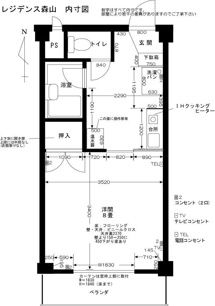 IHクッキングヒーター、エアコン、照明器具付き