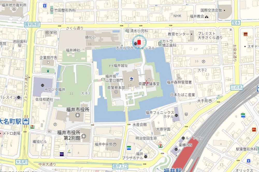 - 福井城址(福井県庁)北方隣接ホテル内